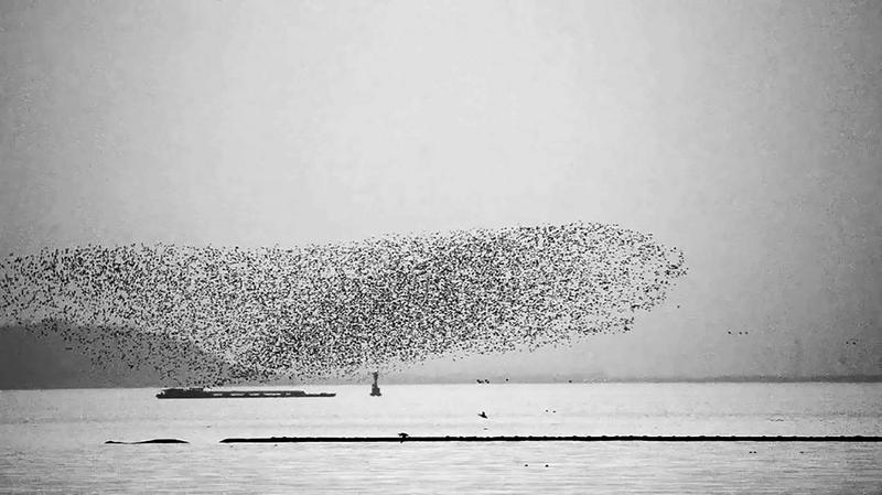据悉,这次被拍摄的“鸟浪”由数万只鸟类组成,是巢湖历史上首次出现如此壮观的景象。