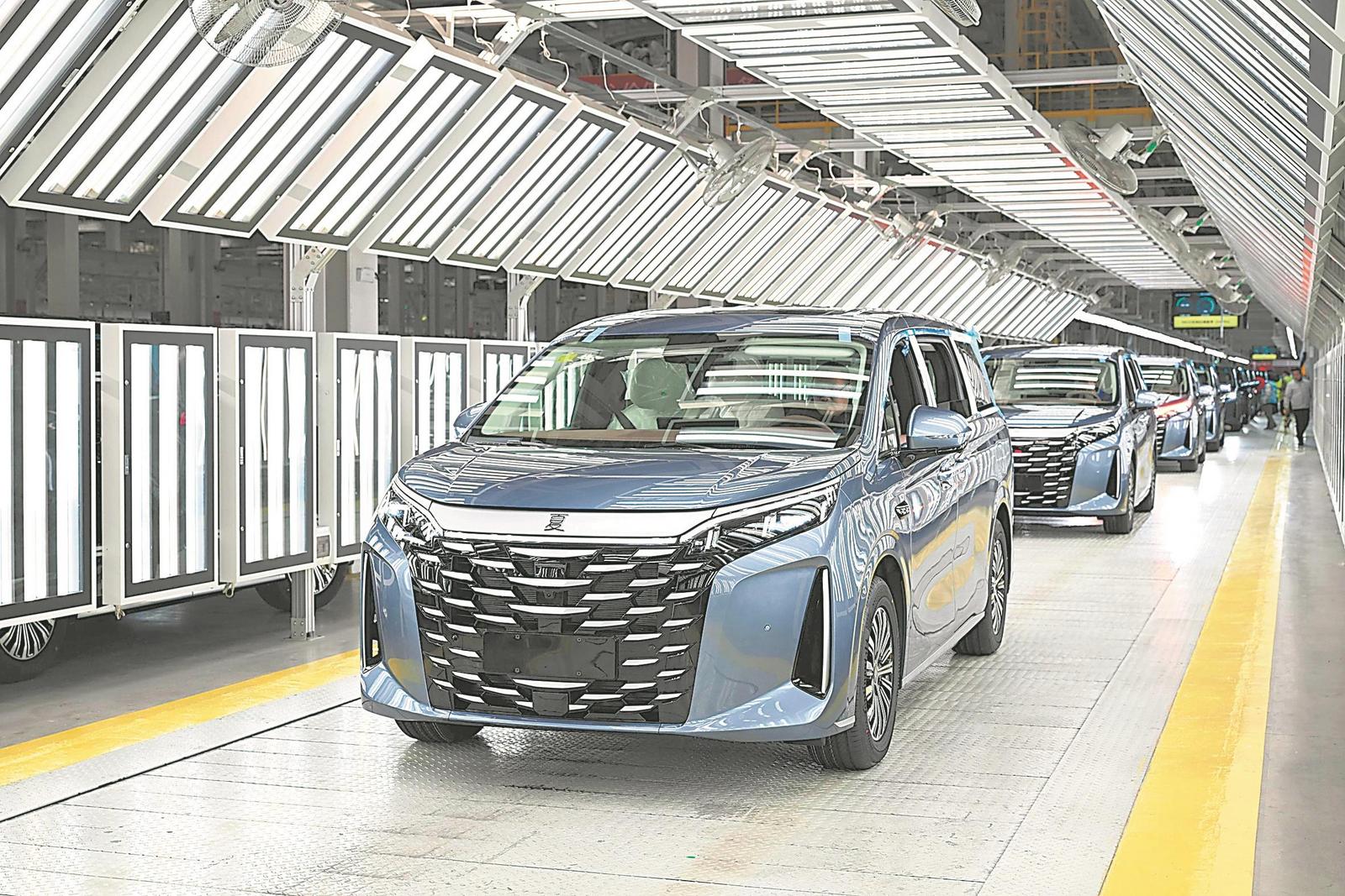 2月6日,在位于长丰县下塘镇的合肥比亚迪汽车有限公司总装车间,比亚迪夏MPV下线。记者 张大岗 摄
