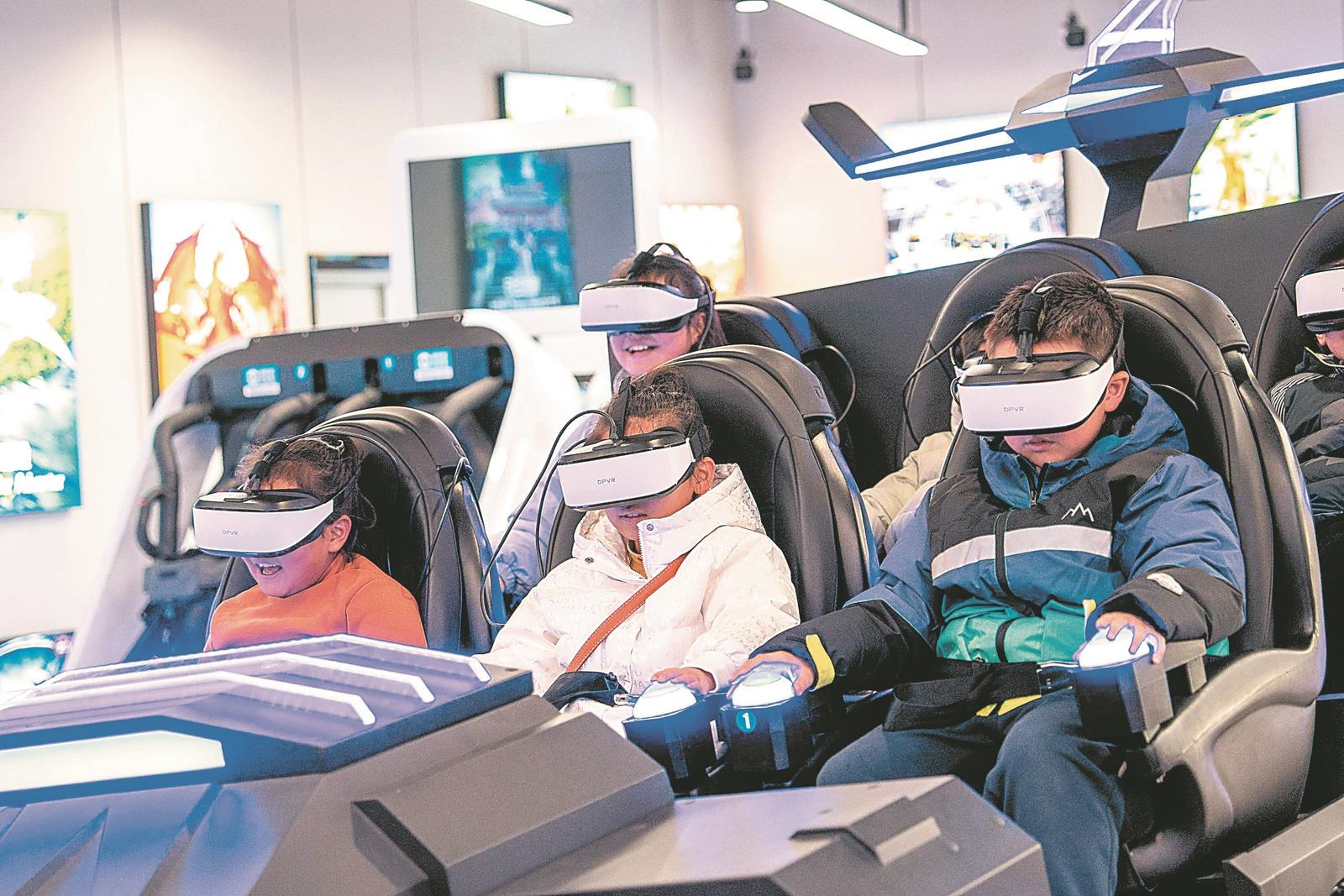 近日,合肥市骆岗公园航空科普馆内,小朋友们在体验VR项目。通讯员 周啸勤 摄