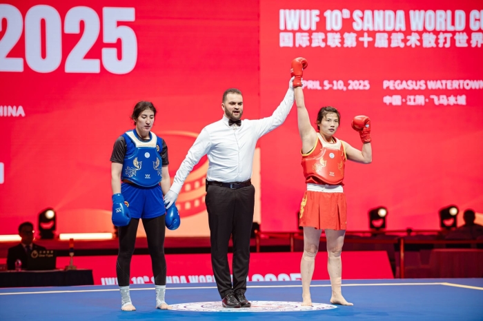 今年4月的武术散打世界杯,堪称顶尖选手的“终极对决”——来自26个国家和地区的近200名运动员中,既有世锦赛前四名的“种子选手”,也有通过全球选拔赛突围的新锐力量。在对突尼斯选手的三局比赛中,朱海兰以2比0的局分,提前获胜,在对土库曼斯坦队选手的比赛中,她以单局分差超过12分的绝对优势,使裁判提前终止比赛。