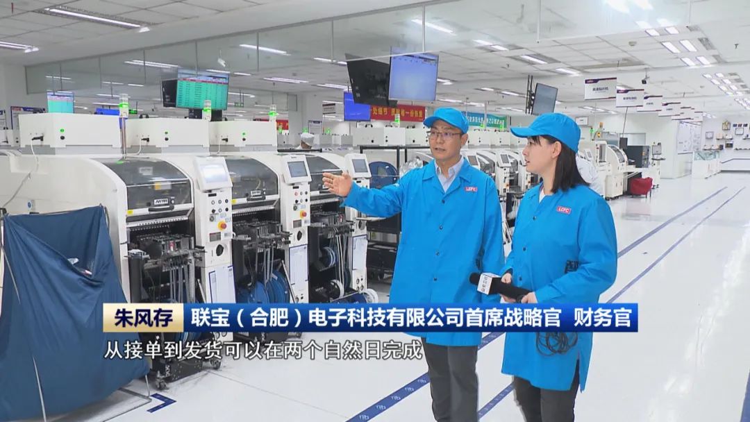 我身后就是联宝科技大名鼎鼎的电脑主板生产线“哪吒线”,正如其名,它的自动化率高达90%以上,仿佛哪吒般拥有“三头六臂”,效率非凡。它与企业的柔性生产线结合在一起,就能够应对个性化定制需求,保障紧急订单的闪电发货。