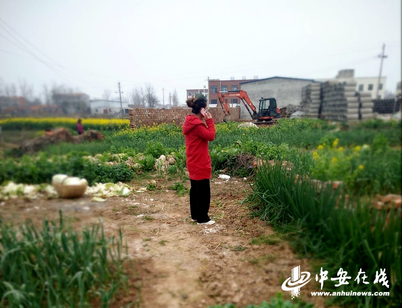 湖北襄阳老家的宋华群 由于农村老家信号不好,在后院菜地工作,与学生、家长沟通