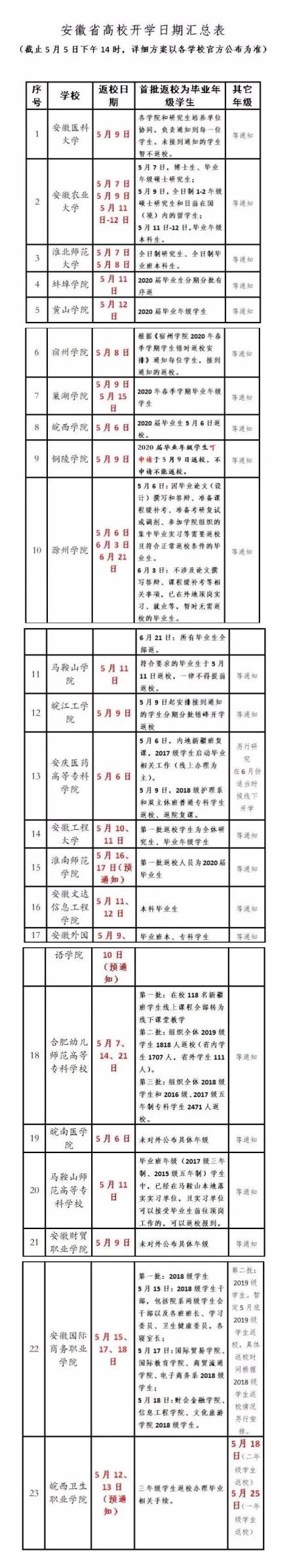 原标题:《刚刚!安徽大学发布返校通知!全省26所高校已官宣!》