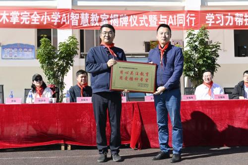 北大国发院、作业帮、弥渡县的代表联合为捐建的木掌完全小学“AI智慧教室”揭牌
