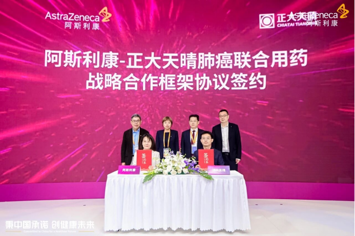肺癌防治是另一大合作焦点。中国生物制药核心企业正大天晴与阿斯利康中国签署联合用药研究协议,针对驱动基因多样性与耐药挑战,探索“中国方案”。谢其润介绍,正大天晴已布局全产业链产品,包括安洛晴®、圣赫途®等靶向药物,并在研管线覆盖第四代抑制剂与双抗ADC,进度全球领先。