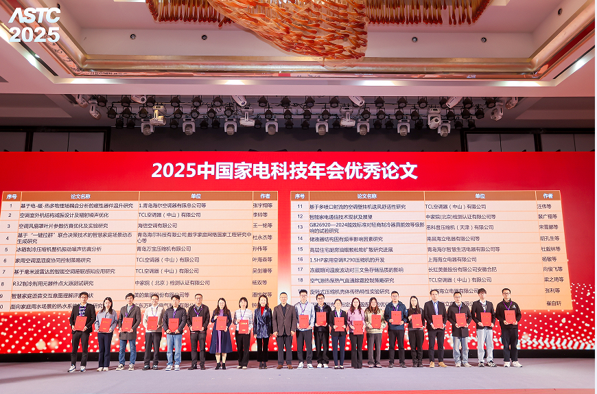 值得关注的是,TCL空调共有29篇学术论文入选本次家电科技年会论文集,其中5篇论文荣获“优秀论文奖”,研究内容覆盖睡眠感知、送风舒适性、除霜控制、噪声优化及温湿度协同等前沿领域,体现了其深厚的技术积淀。
