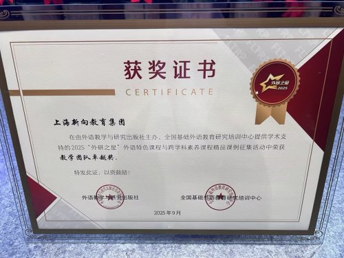上海新向教育集团荣获2025“外研之星”精品课例征集活动“教学团队卓越奖”