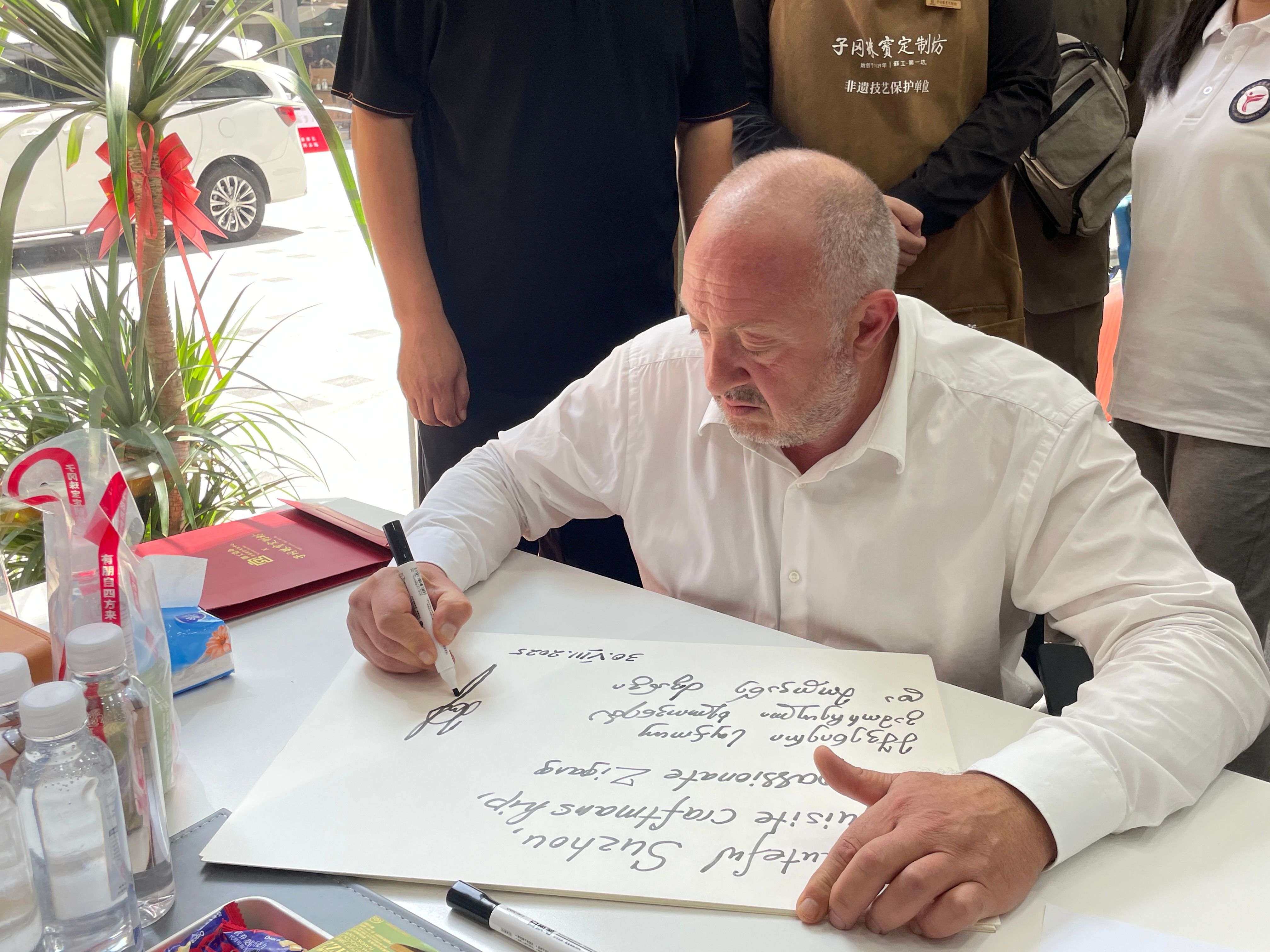今年七夕,格鲁吉亚前总统乔治·马尔格韦拉什维利和夫人专程到访子冈。他们不仅体验了首饰定制,还参观了玉雕藏品和智能金工车间,离店前留下留言:“美丽的苏州,精湛的工艺,热情的子冈。”