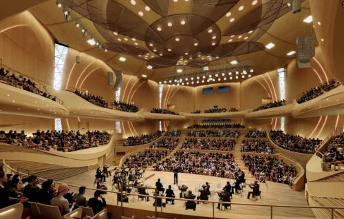 在无锡交响音乐厅项目建设现场,超过1200名一线建设者和管理人员正在火热大干。“太湖明月”主厅内部,室内精装修已经基本完成,1500个座位环绕着舞台,“葡萄园式”的结构力求让每个观众席位都是“黄金座椅”。主厅设计打破了传统封闭音乐厅的束缚,引入自然光,让音乐与光影相互辉映,打造一个“会呼吸”的交响乐空间。