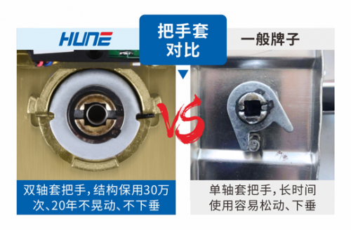 6、科裕独创的大圆盘基座与双轴套把手定位结构,从力学根源上解决了传统把手易松动、下垂的行业痛点。经过50万次下压测试,把手依然稳固如初。面板主推加厚不锈钢304材质,防刮抗腐更耐用,铬色、PVD表面处理保用10年不脱色,锁外壳加厚处理,抗冲击,把手拉力达1600N力(约160公斤)以上。