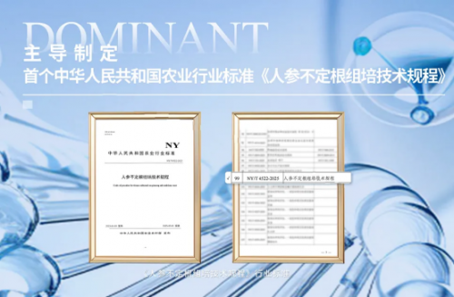这项技术已授权近 40 项国家发明专利,更作为唯一企业单位联合中国标准化研究院主导制定首个中华人民共和国农业行业标准《人参不定根组培技术规程》,填补了行业空白。