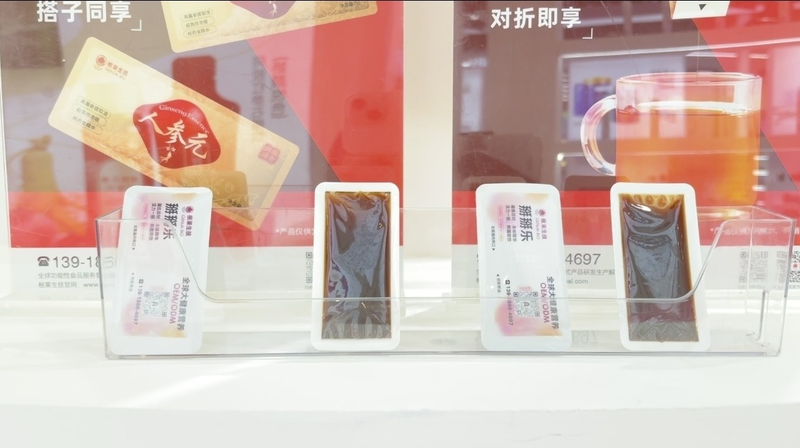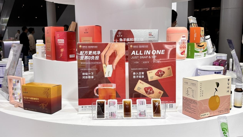 本次展会中,根莱生技推出的 “掰掰乐卡片饮” 尤为引人注目。这一剂型原本在护肤与日化领域已成熟应用,而在食品行业目前多局限于咖啡浓缩液等品类。根莱生技大胆跨界,首次将其创新运用于高端药食同源膏滋产品中。