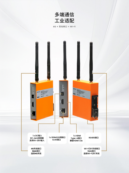 为适配工业现场不同组网环境,IPC1100 具备多元化通信能力:支持 2.4GHz Wi-Fi蓝牙 4.2,可实现近距离设备无线互联,同时板载 4G CAT1 模块,在无线覆盖场景中也能保障数据稳定传输。