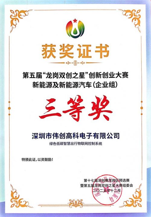 将目光投向更广阔的创新舞台,苏贤洪及其团队在第十七届中国深圳创新创业大赛(国内赛)龙岗区预选赛暨第五届“龙岗双创之星”创新创业大赛中的表现同样可圈可点。在竞争激烈的新能源及新能源汽车赛道企业组中脱颖而出,荣获三等奖,彰显了伟创高科在新能源这一国家重点战略方向上的技术积累与创新活力。创新创业大赛是孕育科技企业、推动成果转化的重要平台,此次获奖,意味着伟创高科的相关技术或解决方案在创新性、市场潜力及可行性方面获得了评审专家的广泛认可。