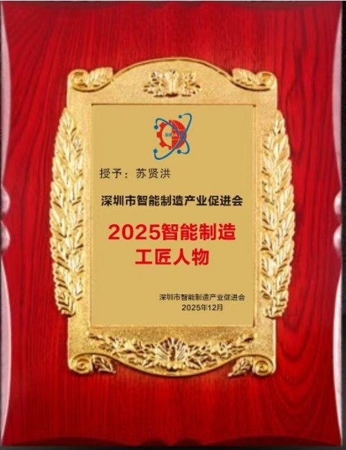 “2025智能制造工匠人物”奖项,由深圳市智能制造产业促进会评审和颁发,具有高度的专业性与权威性。旨在表彰那些在智能制造技术研发、工艺革新、应用推广及产业生态建设中,展现出精益求精、专注执着、勇于创新的新时代“工匠精神”的杰出代表。奖牌设计庄重,金色边框环绕麦穗等象征丰收与荣誉的纹饰,承载着行业对获奖者专业贡献的正式认可。