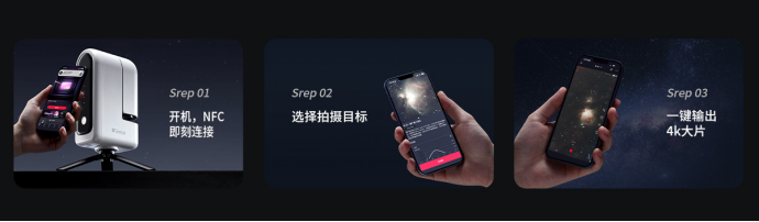 Seestar S30 Pro 延续Seestar系列“智能、易用、轻便”的产品理念,机身小巧轻便,可轻松装入背包。通过智能化设计,产品将原本复杂的天文拍摄简化为“连接设备—选择模式—生成作品”三步操作,秒出宇宙大片,大幅降低了使用难度。在功能层面,Seestar S30 Pro 支持智能寻星、自动跟踪,一键 GOTO 海量天体目标,并结合智能降噪与一键后期处理,让用户无需手动调试,也能在不同环境下稳定拍摄星空影像。相比上一代产品,新品在智能化体验上实现了全面升级,新增星野作品智能地景分离、智能星座识别、NFC 设备识别以及 AI 智能助手等功能,使拍摄过程更高效智能,拍摄作品更清晰震撼。