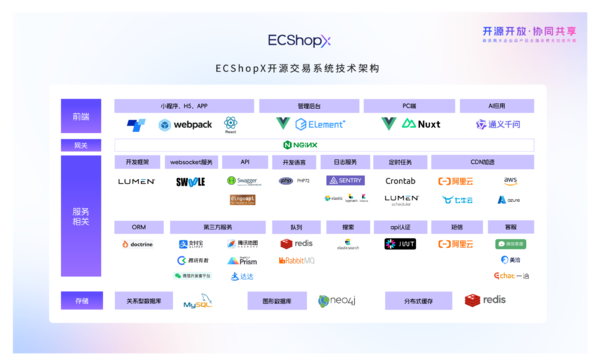 ECShopX采用Lumen 8.x开源框架开发,前端使用VueJS、Taro、Wepy等框架,支持多级缓存机制,API响应时间可控制在2秒以内,支持集群模式部署和阿里云K8S部署。