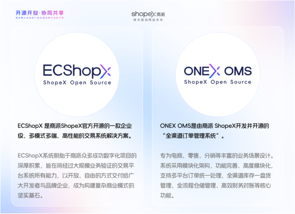 2026年1月4日,深耕企业级软件23年的商派(ShopeX)宣布,将旗下两款经典企业级产品——ECShopX交易系统与ONEX OMS订单管理系统100%无加密、免费开源。两款产品的完整源代码已同步上线GitHub与Gitee两大开源平台,采用Apache 2.0开源协议,支持企业自主下载、私有化部署与自由二次开发。
