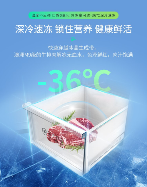 为解决传统冰箱冷冻食材营养流失问题,澳柯玛双拼全嵌冰箱搭载-36℃深冷速冻技术,可在短时间内使食材跨越冰晶生成带,最大程度减少细胞破损,锁住90%以上的原生营养。三文鱼等高端食材经深冷速冻后,解冻时汁液流失率降低70%,口感与新鲜度媲美现切。