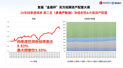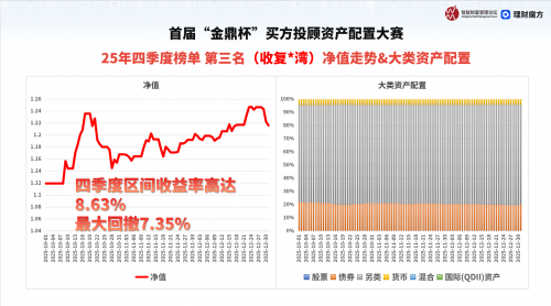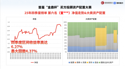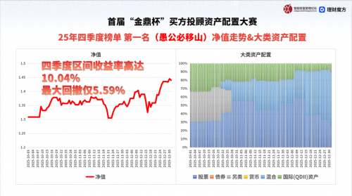 近日,由智能财富管理论坛、北京市东城区立鼎金融与发展研究院、北京口袋财富信息科技有限公司联合主办,理财魔方APP作为主办平台的首届“金鼎杯”买方投顾资产配置大赛圆满收官,2025年四季度官方榜单同步正式揭晓。面对当期市场波动分化的复杂格局,参赛者凭借敏锐的市场洞察力与科学严谨的资产配置策略,交出了收益与风控双优的亮眼答卷。其中,“愚公必移山”参赛组合以10.04%的四季度区间收益率强势摘得桂冠,既彰显了上榜参赛者的专业操盘功底与精准研判能力,更印证了科学资产配置在市场波动分化格局下的核心价值与强抗风险属性。