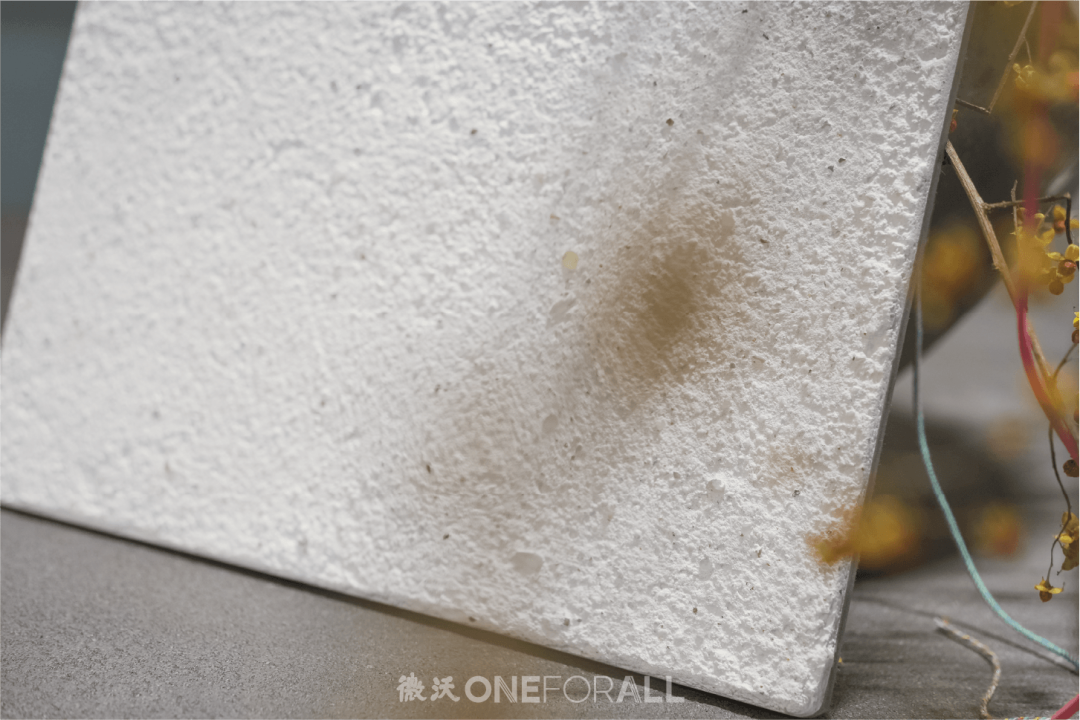 材质上,系列以高端无机干粉为基底,环保健康,贴近自然的呼吸感。更依托中国原创工艺融合手工匠心,集全球优质原材料,以现代科技精准复现东方山川的肌理与气韵。尤为独特的是,系列中的「风物志」并非完成品,而是一块“素胚”,将肌理、颗粒、光泽的最终决定权交予使用者,让每一次施工都成为独一无二的自我表达。