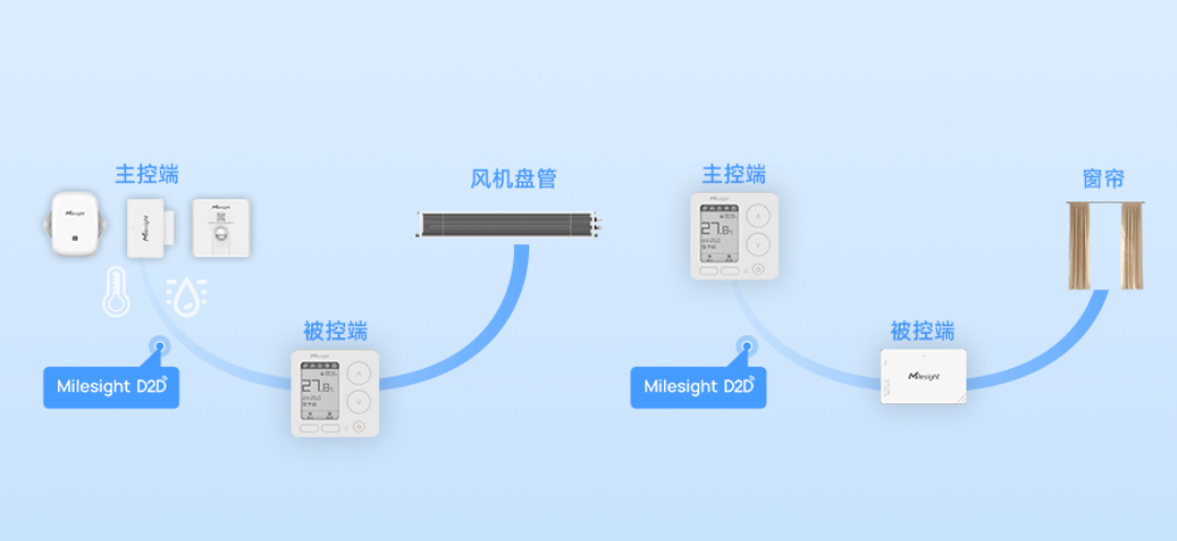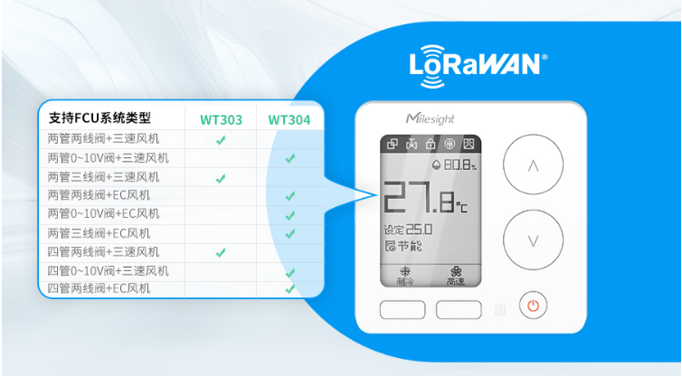WT303/WT304智能风机盘管温控器可作为主控端或被控端,通过星纵物联MilesightD2D协议,实现设备间本地低时延联动。此外,还可通过协议接收外部温湿度数据作为调温依据,实现更精准的温度控制。