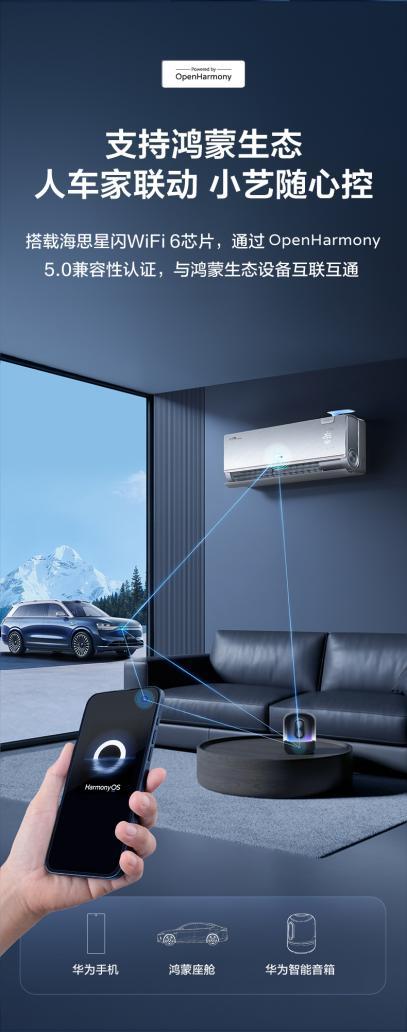 在交互与节能方面,TCL 小蓝翼P7 Ultra的AI语音控制支持100万+指令语音自由说,无需联网即可实现自由对话。AI省电技术通过超省电AI大数据模型算法2.0,不联网也能实现至高省电40%,其超一级能效(APF值5.60)更代表了行业的顶尖水平。此外,该空调还搭载了海思星闪WiFi6芯片,通过了OpenHarmony 5.0兼容性认证,能够与鸿蒙生态设备互联互通。通过小艺语音助手,用户可以轻松实现对空调的远程控制,实现人车家联动,让生活更加便捷、智能。