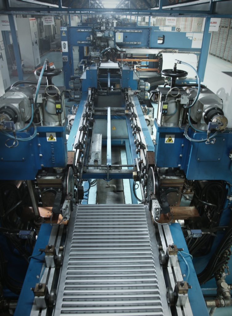 焊接质量直接影响暖气片内部是否生锈,赫泽卡夫特采用意大利LEAS全自动化焊接生产线: