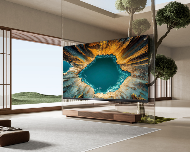 同时,该芯片的指令,由一套高达2940个的MiniLED背光分区精准执行。这意味着屏幕被分割为数千个可独立控光的区域,实现了惊人的12000000:1超强对比度。在呈现《星际穿越》中卡冈图雅黑洞的场景时,星空是纯粹的黑,飞船轮廓的光晕被牢牢控制,没有丝毫溢散。配合XDR 3800nits的峰值亮度,日光、火光等高光场景璀璨而富有层次,视觉冲击力十足。这一切精妙的画面,最终由这块全新升级的“黑瀑屏”完美呈现。它的奥秘在于2.4%的行业超低反射率,核心依托AG防眩层、STW全视角补偿层与LR低反射膜等技术,几乎彻底解决了电视作为“客厅镜子”的反光难题。无论是白天窗边的强光直射还是夜晚室内的灯光,屏幕都几乎无反光、无泛白,更无恼人的倒影,暗场细节依然清晰可辨,让阳光客厅也能随心观看,夜晚追剧也再无眩光干扰。其独有的雾面显像效果,不仅带来柔和舒适的高级哑光质感,长久观看不刺眼,更让屏幕在息屏状态下可播放名家画作,宛如一件沉浸式的家居艺术品。这份久看不累的舒适,是参数表无法量化、却真正体贴入微的体验。