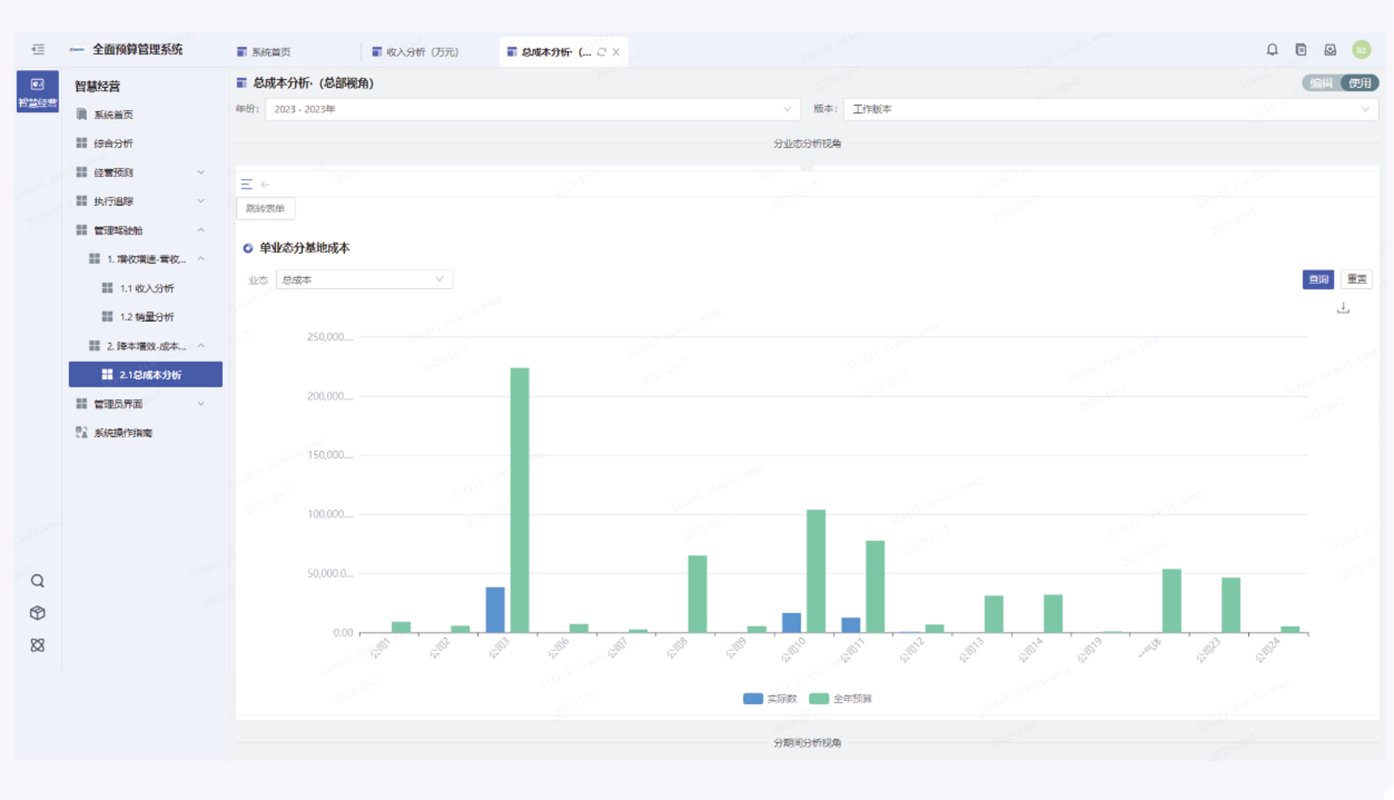 -可视经营看板,决策层快速把握经营动态:实时展示预实差异、预算进度、风险预警等核心信息,支持多维度分析(业态、板块、项目、期间),让决策层快速把握经营动态。