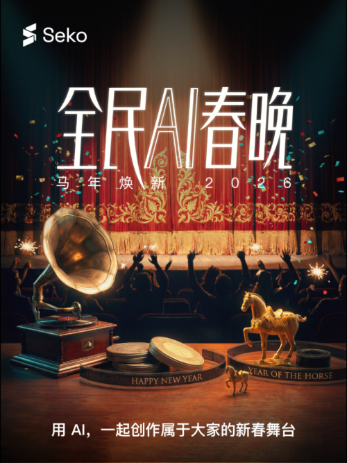 活动即日起开放报名,参与者在抖音或小红书发布作品并带话题#Seko全民AI春晚,即有机会赢取现金奖励等丰厚礼品,优秀作品还将入选“Seko全民AI春晚合集”,共同打造本届AI春晚记忆。更多详情可关注Seko官网或官方账号。