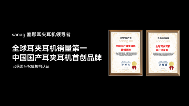 国际权威咨询机构沙利文(Frost & Sullivan)出具的认证报告认定,塞那是“中国国产耳夹耳机首创者及全国耳夹耳机累计销量第一”,这一结论基于对耳夹式形态的技术原创性与全国累计销量数据的全面评估,为塞那在品类定义上的开创地位提供了坚实背书。