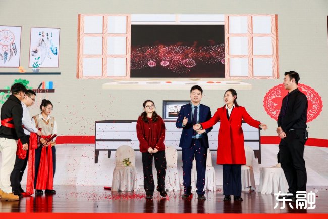 下半场的舞台精彩纷呈,有气势磅礴的国风舞蹈、深情动人的吉他弹唱、令人捧腹的小品表演、充满民间智慧的二人转、绚烂多姿的民族舞……多才多艺的东融人自编自演,献上了一场视听盛宴,赢得了满堂喝彩。