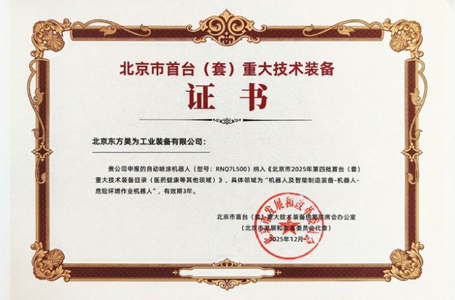 近日获悉,北京东方昊为工业装备有限公司(以下简称“东方昊为”)近期接连斩获两项重要荣誉——成功获评国家级专精特新“小巨人”企业称号,其自主研发的自动喷涂机器人产品亦入选首台(套)重大技术装备目录。两项重磅级认定,充分展现了该公司在智能涂装及自动化表面处理领域的技术积淀与核心实力。