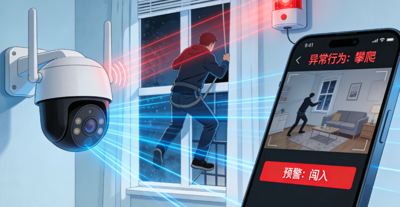 AI智能监测升级,精准识别安全隐患。升级后的智能摄像头搭载AI行为分析算法,可精准识别闯入、攀爬、徘徊、遗留物等异常行为,区别于传统摄像头的“被动录像”,实现“主动预警”——一旦检测到异常,立即发出高分贝警报,同时向主人手机APP推送预警信息与现场画面,主人可通过双向语音对闯入者进行警示,若情况紧急,可联动社区安保终端,实现快速响应。摄像头支持360°全景拍摄,无死角覆盖室内空间,白天黑夜均可清晰捕捉画面,搭配红外夜视功能,夜间也能精准监测。