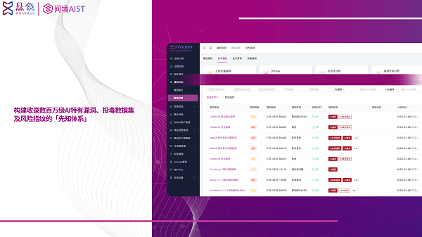在AI安全的博弈中,响应速度决定治理成效。问境AIST底层由云脉XSBOM风险情报引擎实时驱动,构建起收录数百万级AI特有漏洞、投毒数据集及风险指纹的“先知体系”。