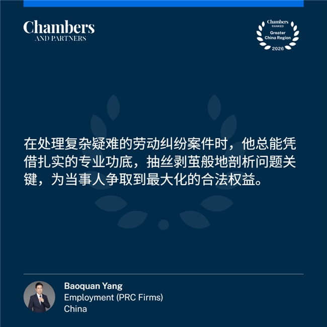 2026年1月15日,国际权威法律评级机构钱伯斯(Chambers & Partners)公布了《2026钱伯斯大中华区法律指南》(Chambers China Region 2026)榜单。