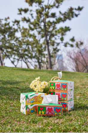 赛百味每年有4至5波新品上市,每一次上新,产品的“外衣”都会随之持续焕新,带来截然不同的审美体验。首批上市的“纸巾盒式包装盒”及全套系列包装,便披上了美国波普艺术大师凯斯·哈林经典的“心动涂鸦”画作。作为世界级的艺术图腾,凯斯·哈林作品中标志性的动感舒展的彩色小人、缀着翅膀的爱心,以极其跳跃的色彩和生动的形态,完美契合了春日万物复苏的律动。