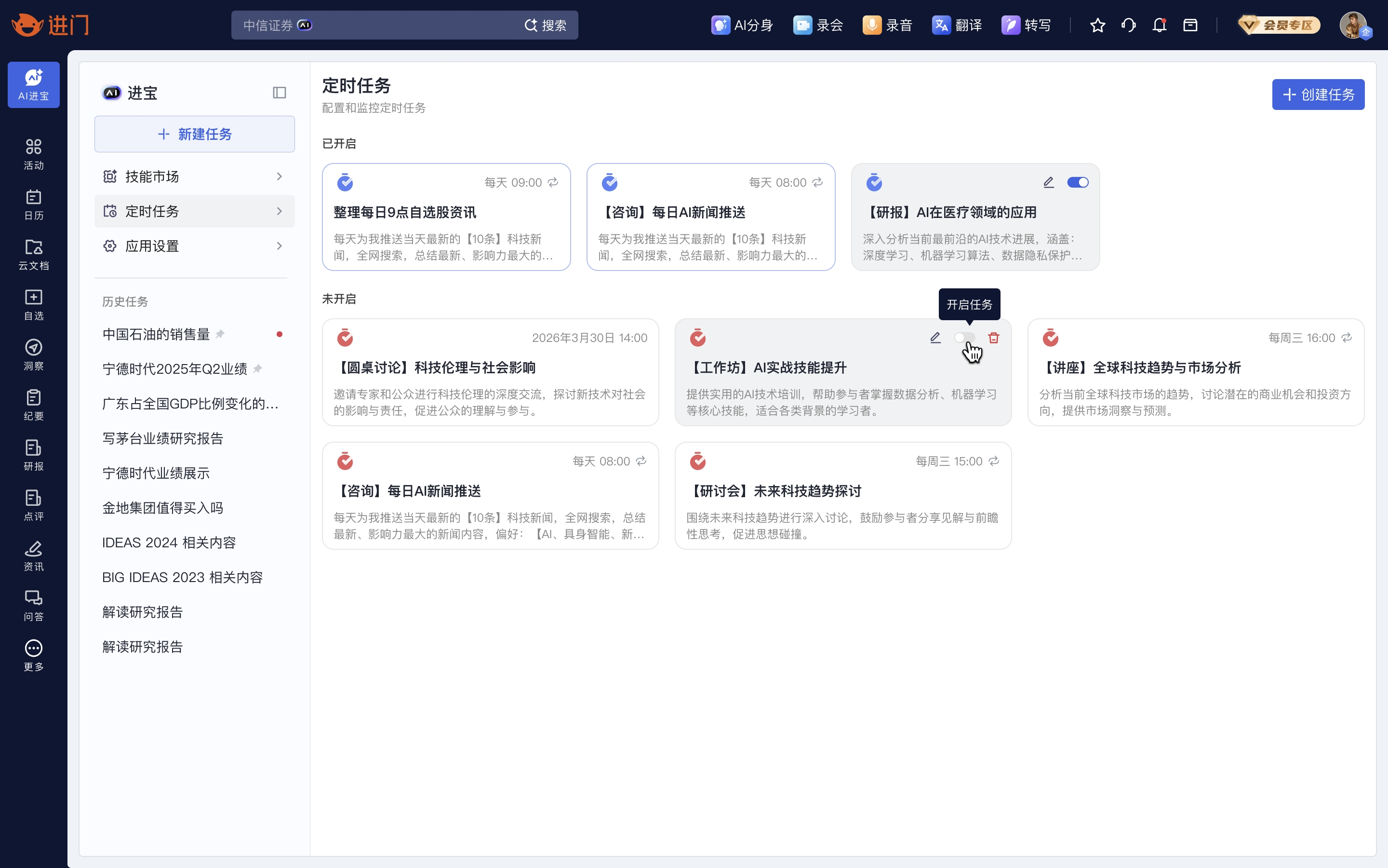 同时,依托进门智能工具生态,打通转写、录音、会议托管、翻译、云文档等能力,实现相关工具自动调用。