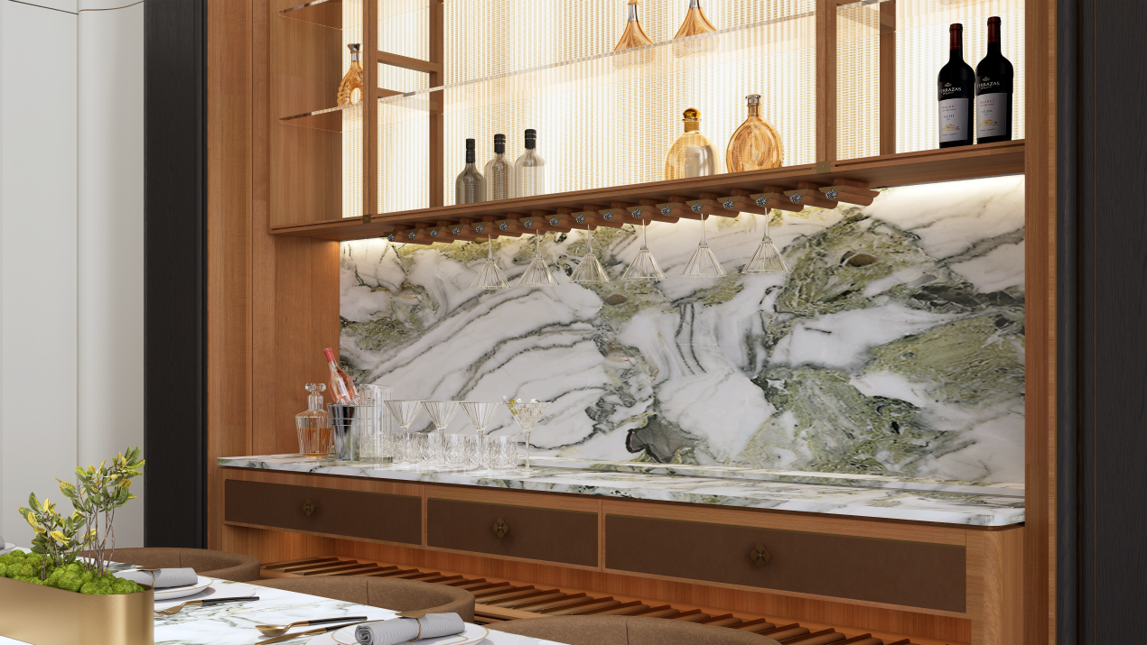 在金佰威构筑的场域空间里,那些本能独自成景的细节,不会喧宾夺主,而是在空间的尺度、气韵里安静地退后,它们不争不抢,不言不语,只会在你目光所及、指尖所触的每一个瞬间,给与回应。奢华,隐于无形,却也无处不在。