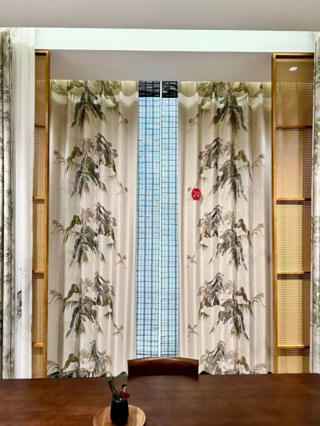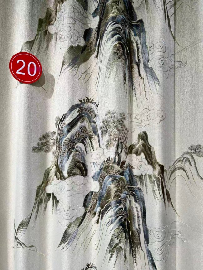 更令人惊叹的是其重磅刺绣系列。运用多达30余套色的绣花丝线,针数高达数百万针,将传统苏绣的细腻韵味与现代织造工艺的精准完美融合。无论是魏晋《兰亭序》的文字风骨,还是山水花鸟的自然意境,每一幅刺绣窗帘都是一幅独立存在的艺术作品。