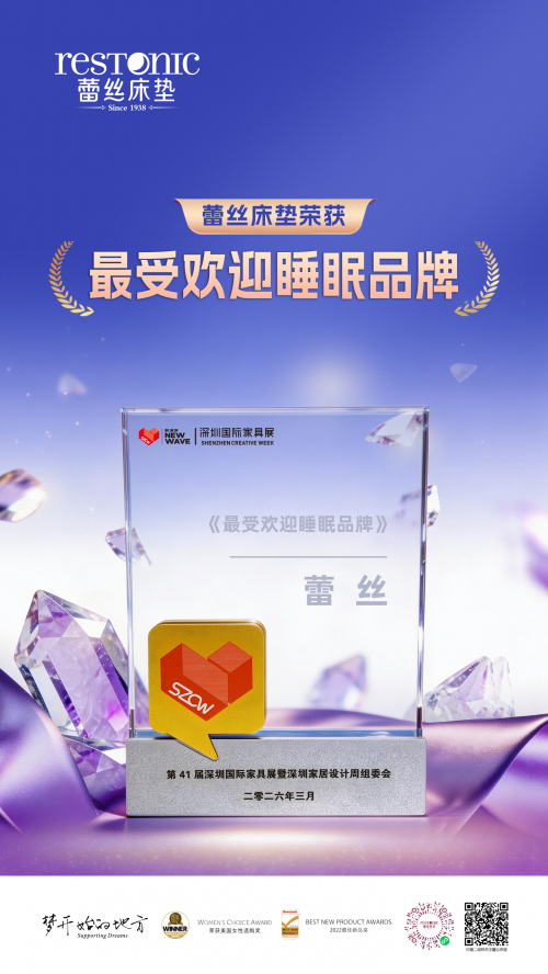 本次展会,蕾丝床垫凭借在女性健康睡眠领域的深耕积淀、领先的智能睡眠产品力与超高的市场口碑,一举斩获《最受欢迎睡眠品牌》奖。这份荣誉既是行业与广大消费者对蕾丝品牌实力的高度认可,也是对蕾丝床垫持续聚焦女性睡眠需求、以科技创新推动健康睡眠行业升级的权威印证,更坚定了蕾丝床垫深耕女性专属健康睡眠赛道、领跑行业发展的初心。