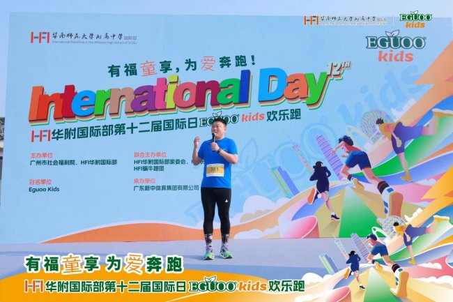 这场以“有福童享,为爱奔跑”为主题的公益盛事,由华南师范大学附属中学国际部、广州市社会福利院主办,HFI家委会、长跑社、蜗牛跑团联合主办,广东新中体育集团有限公司承办,近500名HFI师生、校友、家长及社会爱心人士齐聚一堂,以奔跑之名为广州市社会福利院的孩子们传递温暖与希望。作为冠名赞助商,EguooKids全程助力此次活动,将品牌对儿童成长的关注与公益初心融入每一步奔跑,用实际行动践行企业社会责任。