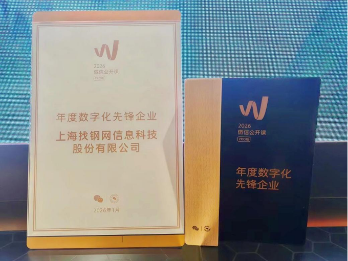 在数字化浪潮汹涌澎湃的时代,产业变革的步伐不断加快。1月15日,2026微信公开课PRO大会盛大举行,上海找钢网信息科技股份有限公司(英文名:Shanghai Steel Information Technology Co.,Ltd.)凭借在产业数字化和人工智能应用领域的卓越成就,脱颖而出,荣获“年度数字化先锋企业”这一极具分量的奖项,为产业数字化发展树立了新的标杆。