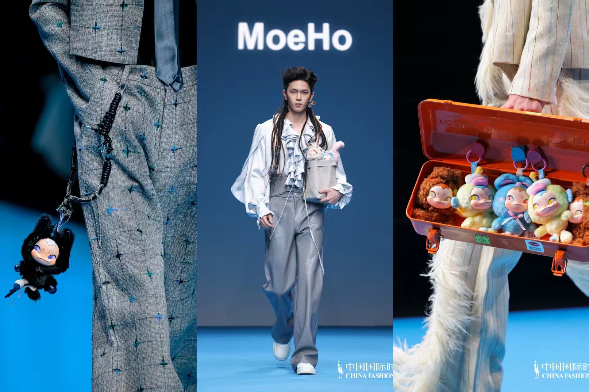 本次时装周期间,贺萌萌(MoeHo)、索非燕・卡力(LockFlyDuck)、侯若祎(ASSIGNMENTS)三位专业设计师,以“NINNIC时尚挚友”身份倾力加盟,通过三场风格各异的创意大秀,探索时尚和潮玩的风格有机融合,打破次元边界重构审美表达。聚光灯下,NINNIC化身精致时尚配饰,或轻缀颈间、或挎于腰畔、或揽于怀中......与专业模特同台走秀,成为秀场上一抹亮眼的特色风景。