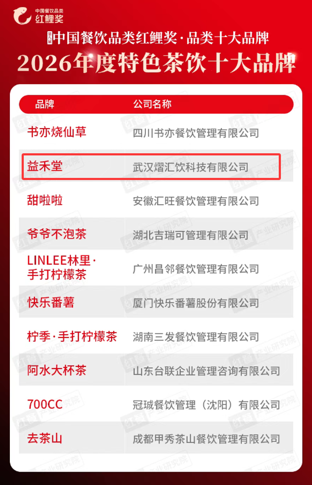 再获殊荣!益禾堂蝉联红鲤奖“2026年度特色茶饮十大品牌”