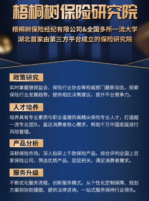 自成立以来,梧桐树保险研究院始终深耕互联网保险经纪领域,全力搭建保险行业理论界与实务界的沟通桥梁,持续推动梧桐树保险经纪产品筛选体系迭代升级、服务模式优化创新,助力行业中介规范发展。