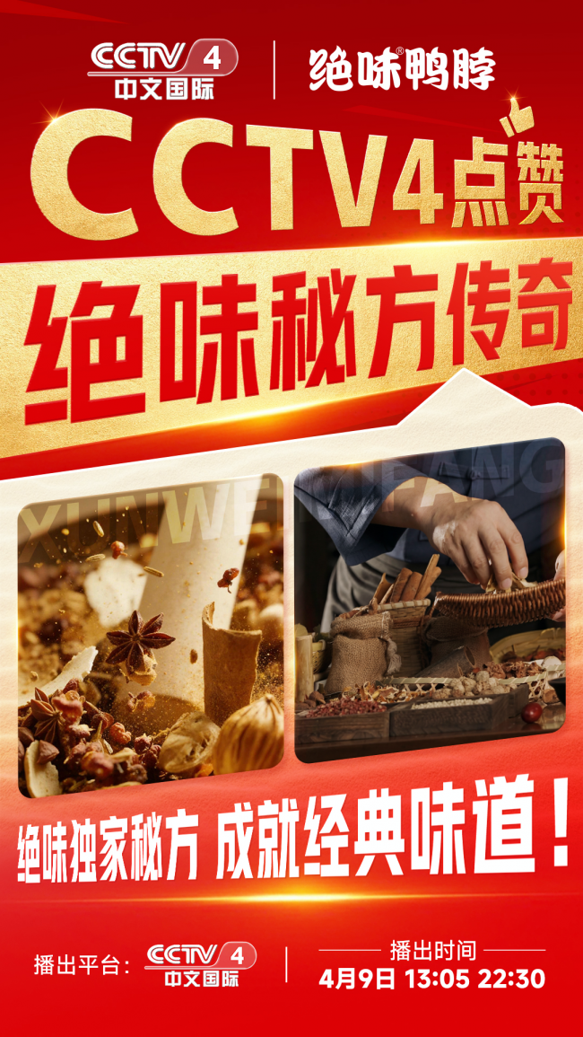 21年的坚守,不仅让绝味的风味成为行业内难以复刻的特色,更让这份匠心获得了国家级权威平台的关注。CCTV-4面向全球华人与国际观众,播出绝味食品的品牌故事,讲述绝味21年的风味坚守,将镜头下的匠心转化为可见的品牌信任。作为国家级国际传播平台,CCTV-4的宣传,既是对绝味21年守味成果的肯定,也让中国卤味的匠心走向了更广阔的国际视野。