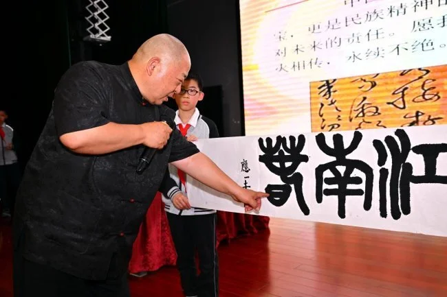 本次李奕声书法美育百城千场公益行走进杭州江南实验学校,既是对国家书法教育政策的精准落实,也是文化公益赋能青少年成长的生动实践。相信随着活动的持续推进,书法美育将在更多校园绽放光彩,让青少年在笔墨浸润中传承文化根脉,以文化自信书写人生华章,为国家培育文化后备人才,绘就文化复兴的崭新图景。