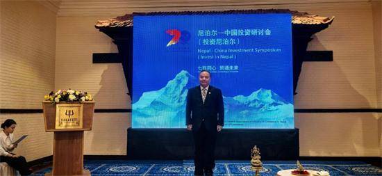 上图:罗大友在尼泊尔首都加德满都“中尼文化、企业、金融、科技交流 论坛”现场演讲